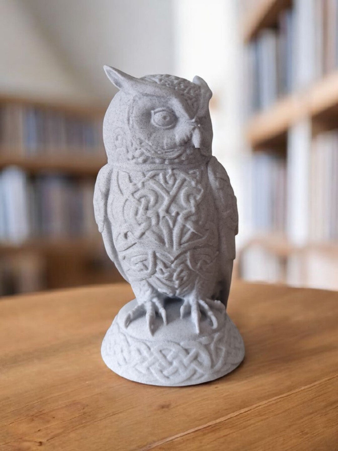 A richly detailed owl adorned with intricate Celtic-style ornaments, this sculpture is a standout piece for collectors and enthusiasts. Perfect for desks, shelves, or as a striking decorative accent.