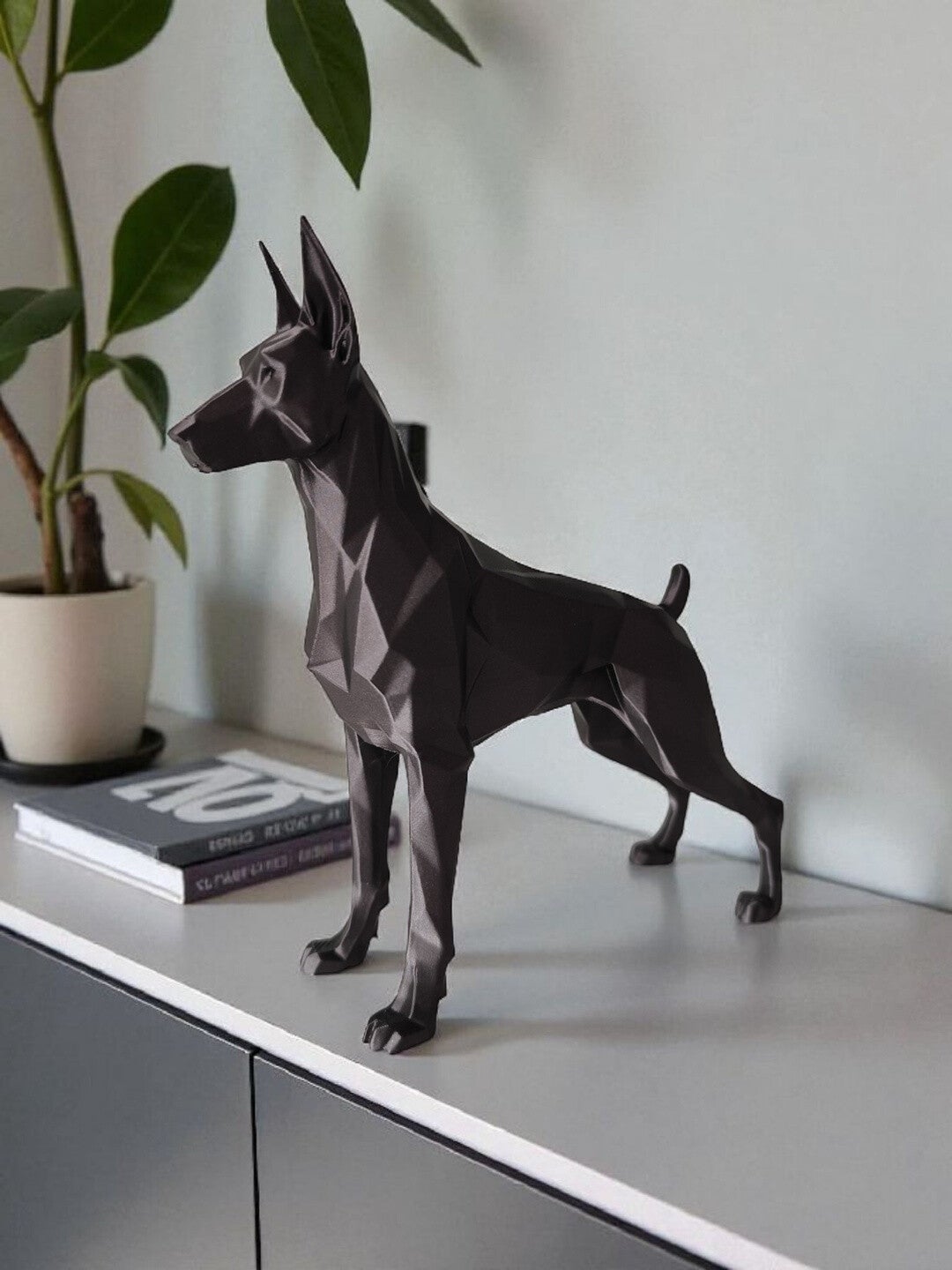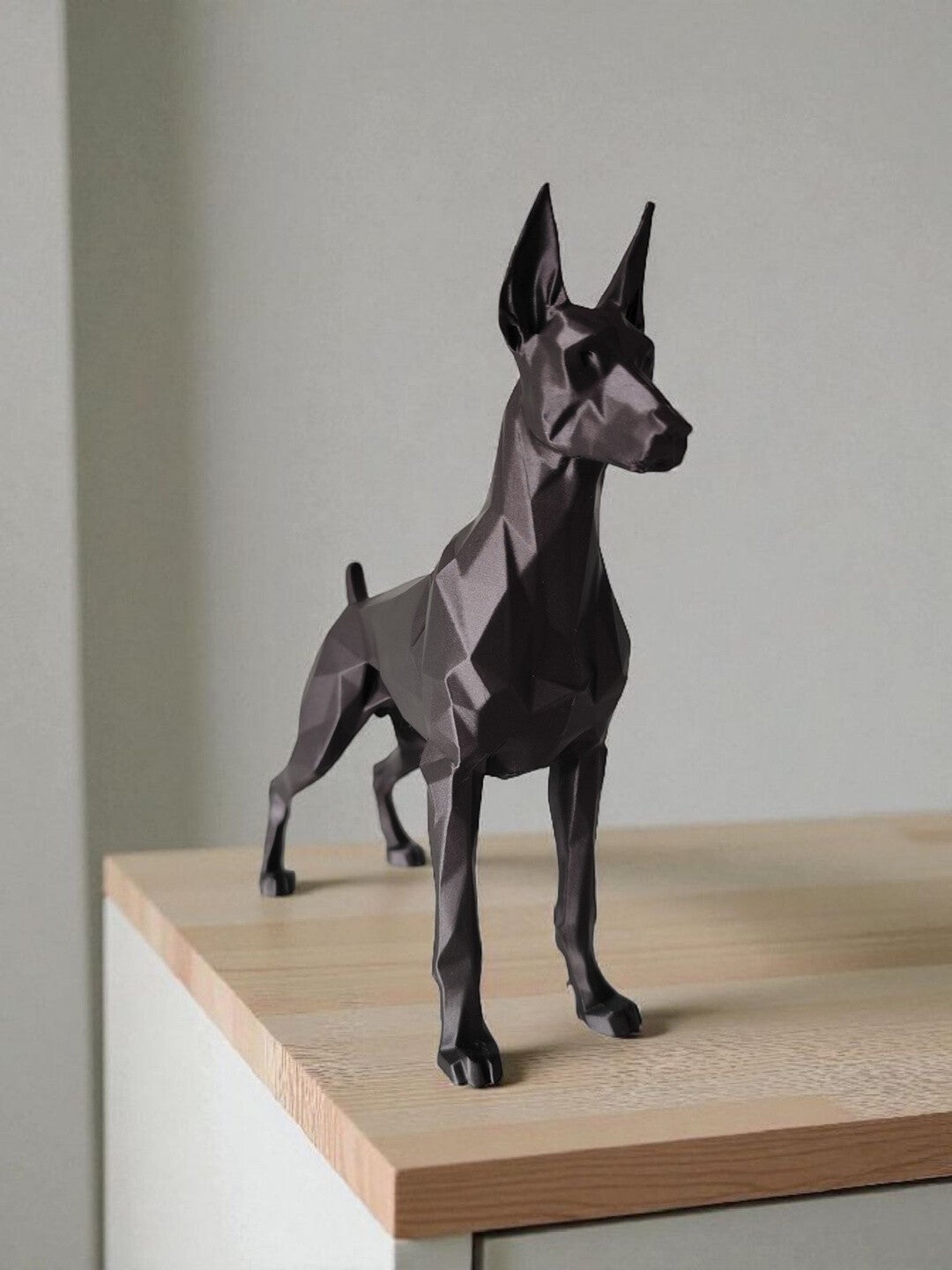 Slim, powerful, and graceful, this Doberman captures the breed’s striking presence with bold polygonal surfaces. A perfect addition to any collection, desk, or shelf.