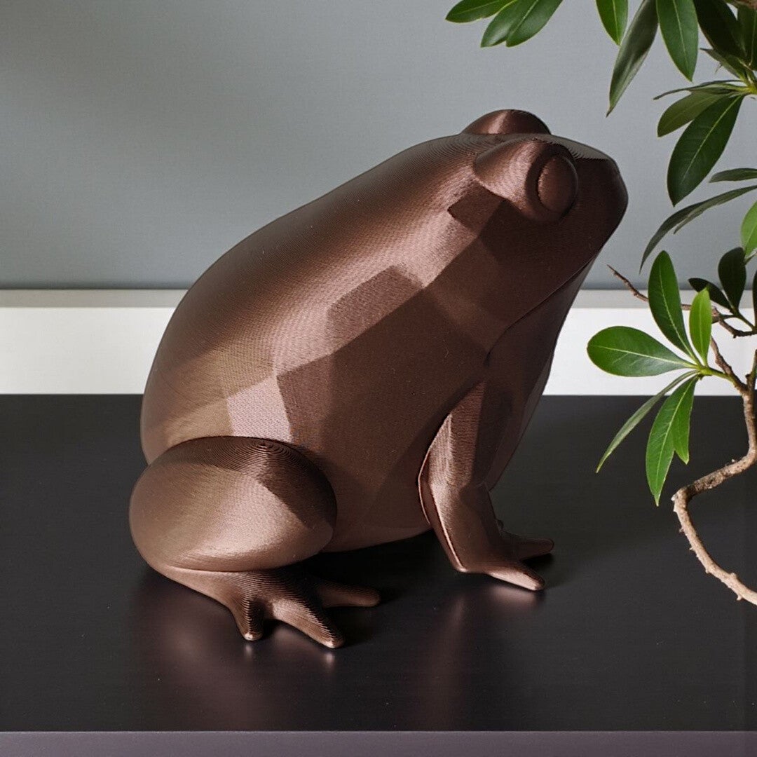 A playful frog with clean, modern lines—perfect for desks, shelves, or any space that could use a touch of whimsy.