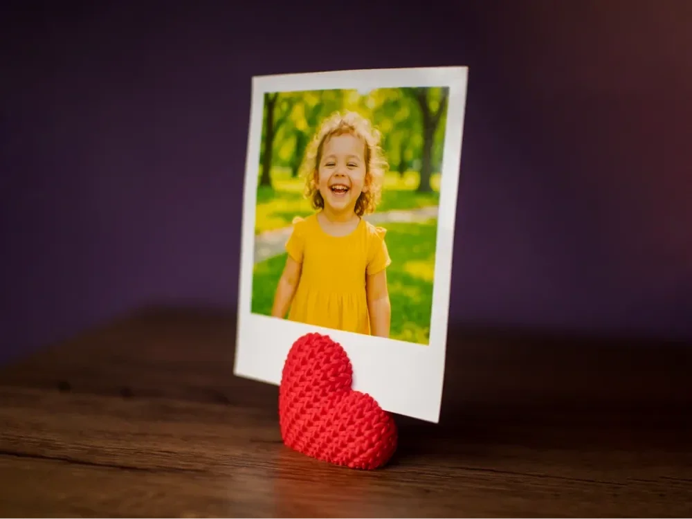 A cute and creative photo stand shaped like a little heart. Perfect for decorating any space or gifting to someone special. It looks great with or without a photo.