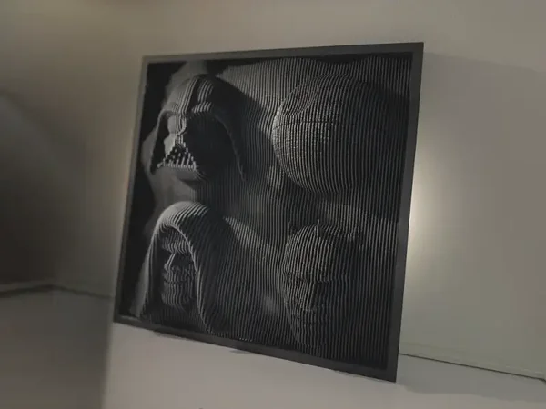 A dramatic layered artwork merging iconic Dark Side motifs into a sleek black wave design. With bold depth and striking contrast, it creates a powerful focal piece for Star Wars fans, perfect for collections, themed décor, or display spaces.
