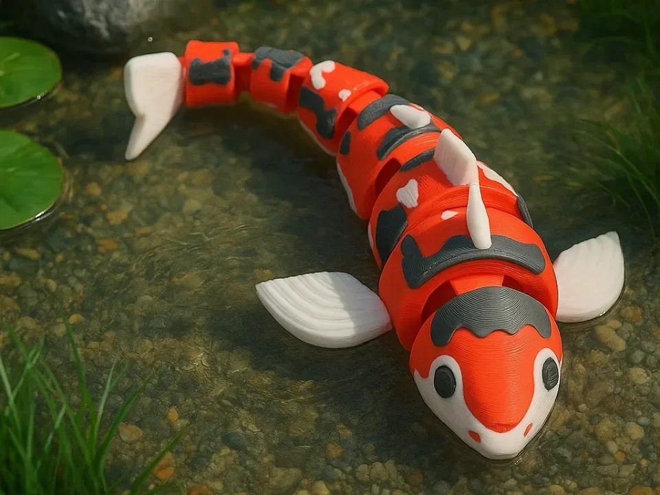 A cute articulated koi carp with a flexible, segmented body that moves smoothly when handled. Perfect as a fidget toy, desk companion, or playful display piece, it adds charm and motion to any space.