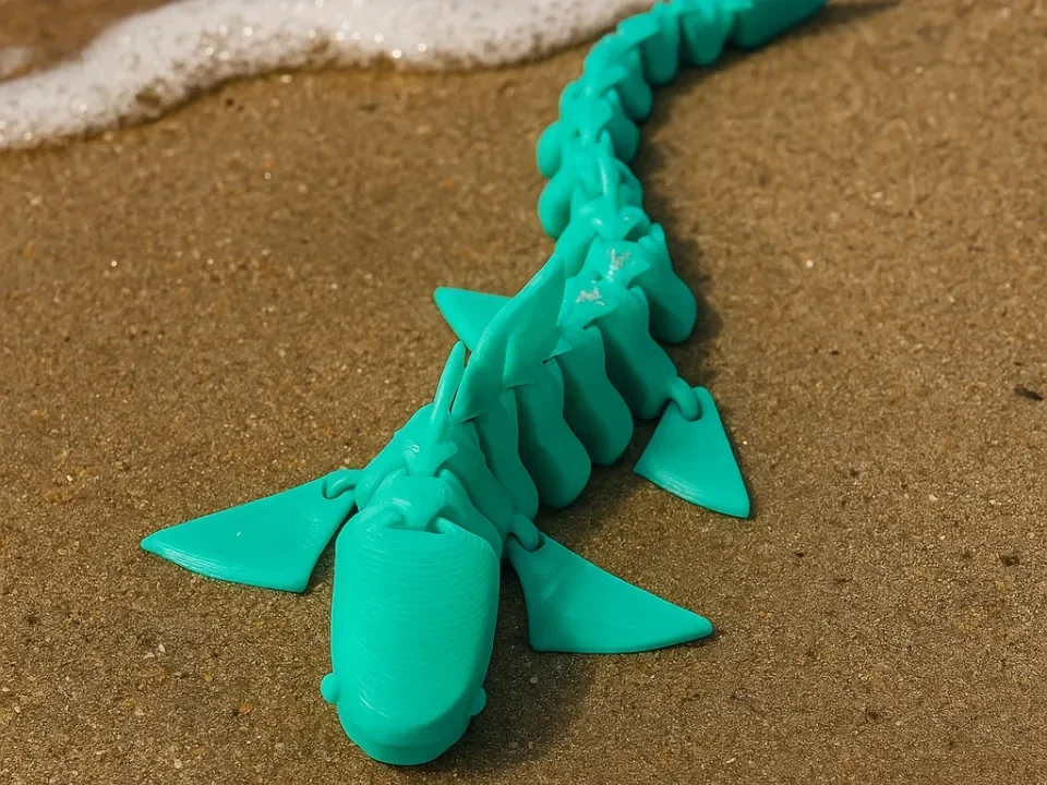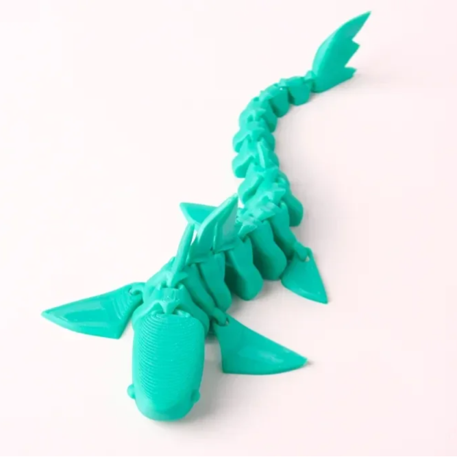 A cute articulated shark skeleton with flexible, segmented joints that move smoothly when handled. Perfect as a fidget toy, desk companion, or playful display piece.