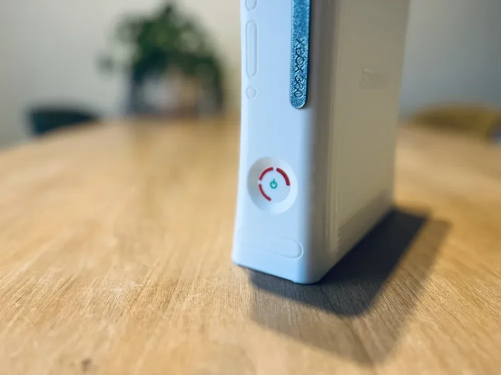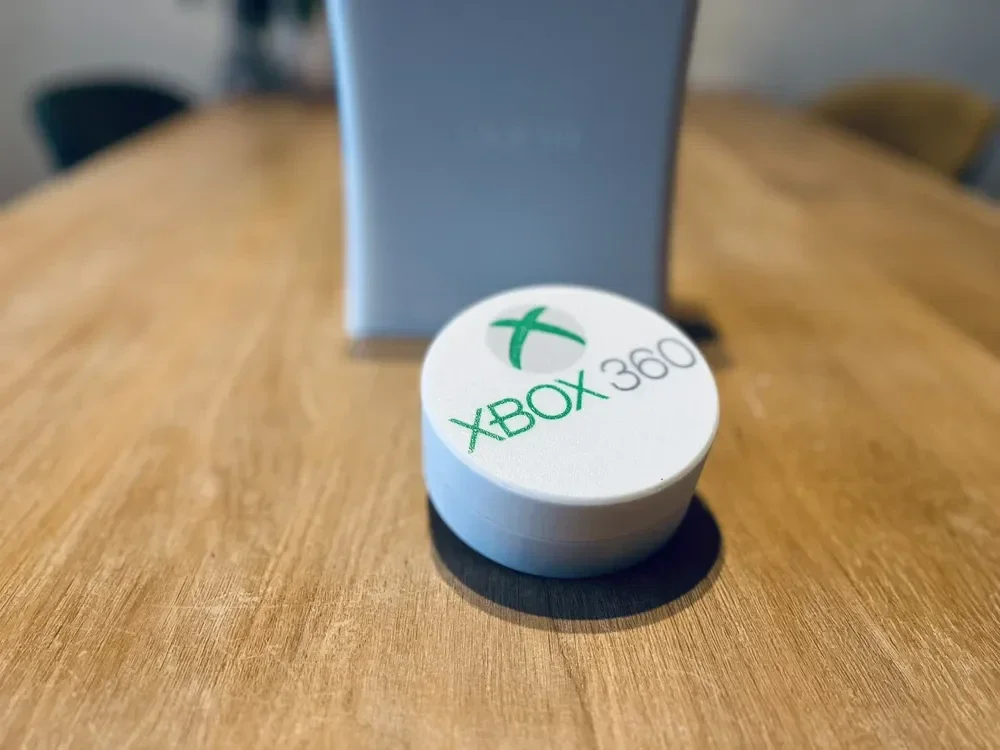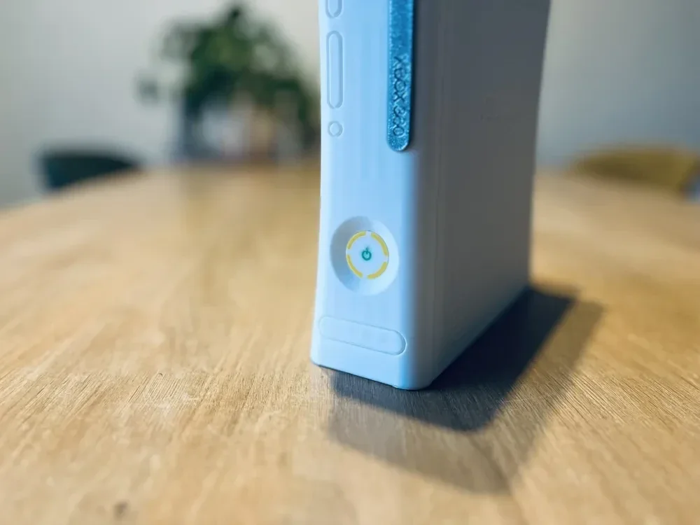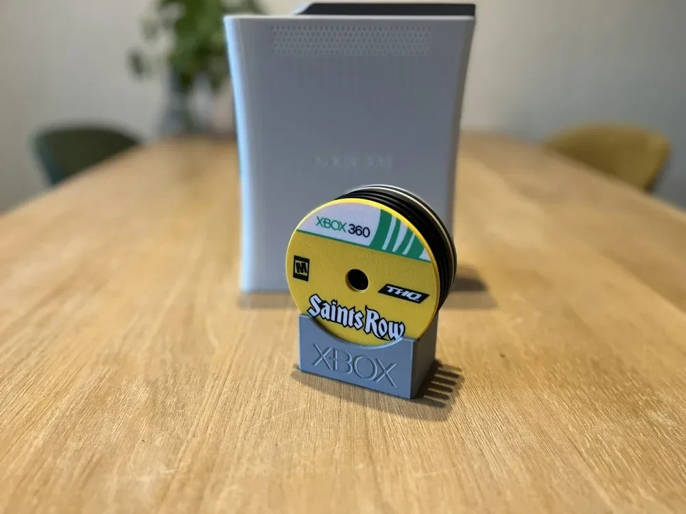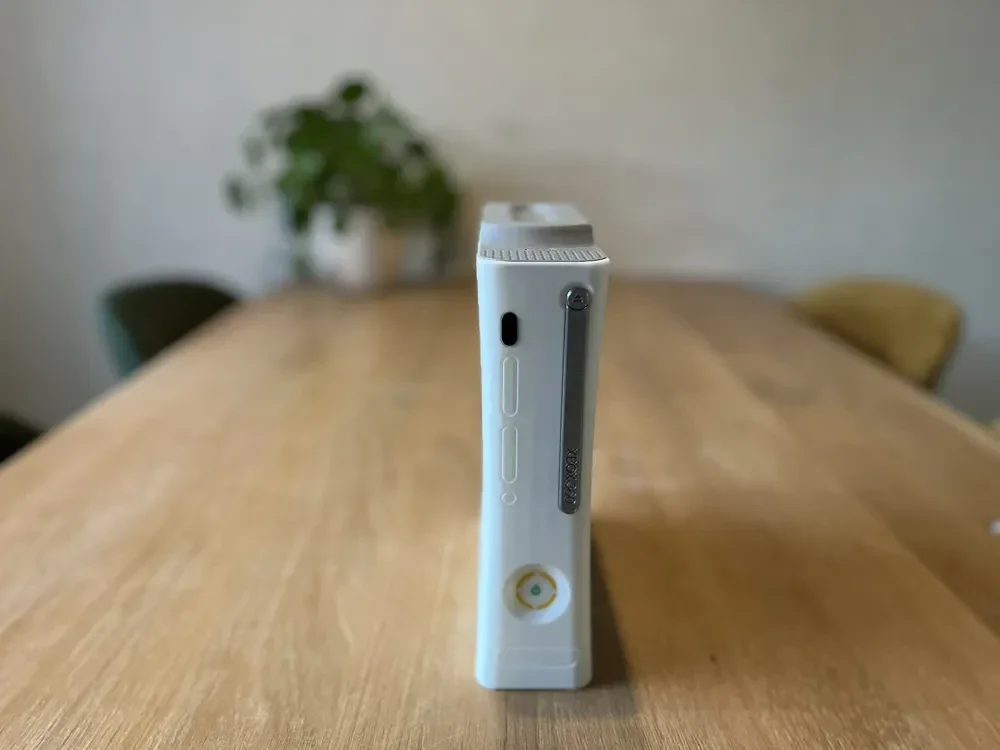 Relive the glory days of the Xbox 360 with this detailed 3D-printed console display, complete with a built-in coaster holder and 22 iconic game titles—perfect for a game room, desk, or nostalgic living space feature.