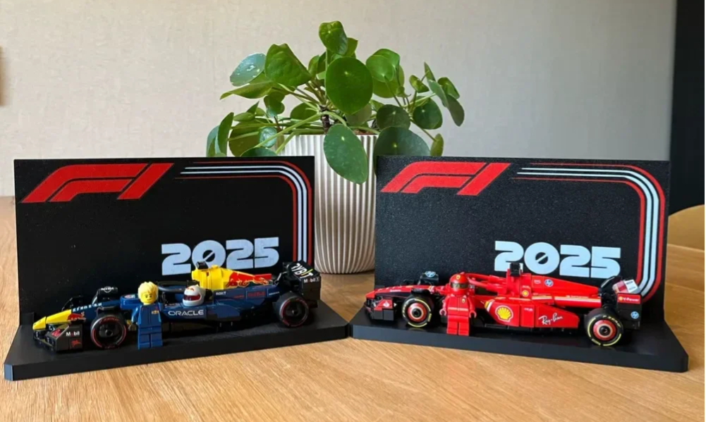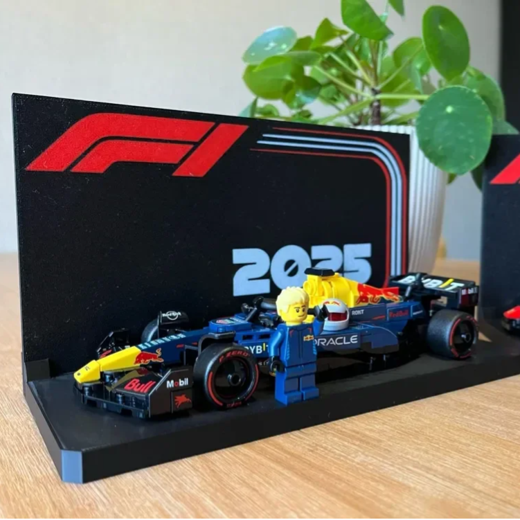 Show off your F1 Speed Champions in style with this custom display stand, designed to hold your car securely in place. The wheels slot neatly into the base to prevent movement, with a dedicated space to display the minifig alongside the car.