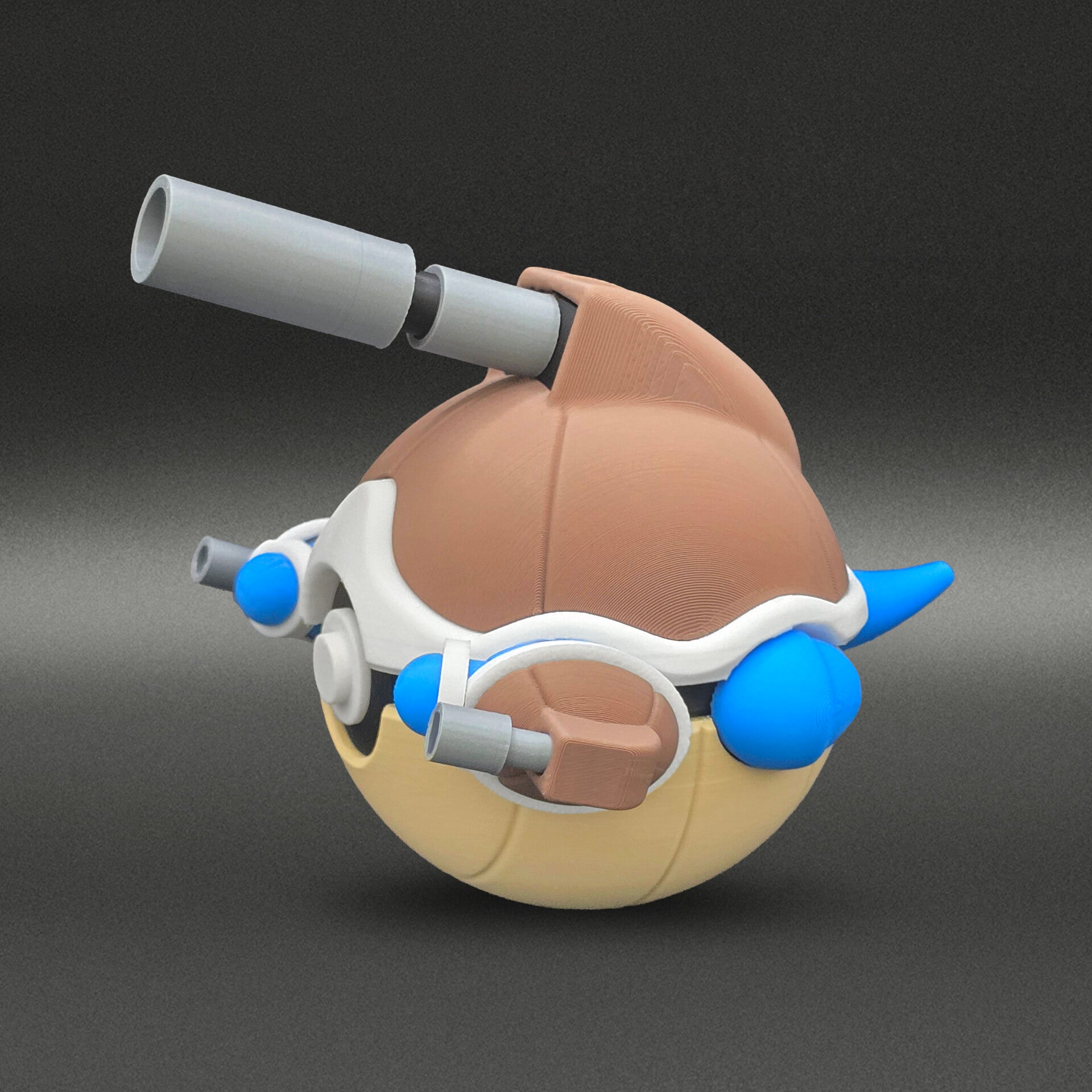 Mega Blastoise is a powerful Water-type Pokémon that undergoes a massive transformation, fusing its two back cannons into one super-powerful Mega Launcher, and adding cannons on each arm, allowing it to fire devastating water blasts over six miles away.